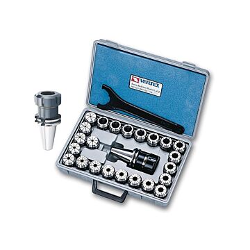 Hogetex heeft een groot assortiment losse ER spantangen (DIN 6499) of een set ER spantangen van VERTEX. Ook hebben wij ER spantangensets met een spantanghouder van VERTEX. De spantanghouder kan dan met een morsekonus opname zijn, een SK opname volgens DIN 69871, een R8 opname, of een opname (NT) volgens DIN2080 / ISO . De spantanghouders zijn ook los te koop op onze website. Er zijn ook sets ER spantangen van Vertex verkrijgbaar zonder een opname. Voor als u reeds een opname heeft maar nieuwe ER spantangen kunt gebruiken. De spantangen van Vertex zijn van uitstekende kwaliteit en zijn gehard en geslepen en dubbel ingezaagd.